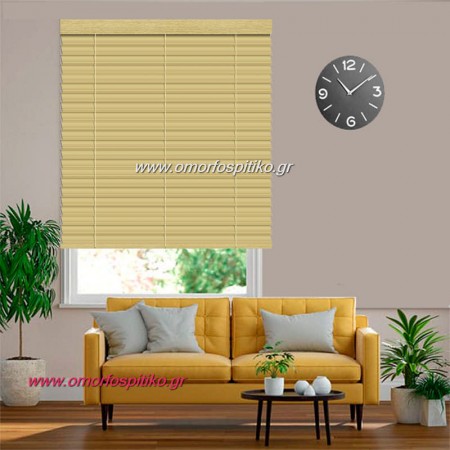 Οριζόντιες περσίδες ξύλου, φάρδους 50mm και πάχους 2,3mm. Κατασκευασμένες από φυσικό ξύλο