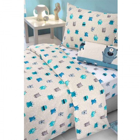 Σετ παιδικά σεντόνια για μονό κρεβάτι σε χρώμα μωβ με φούξια σκυλάκια