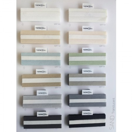 Κυψελωτές περσίδες SAND THERMOCELL  με ένα μοναδικό προστατευτικό στρώμα που κόβει τις επιβλαβείς ακτίνες UV. Προστατεύουν τα έπιπλα και τα πατώματα σας από το ξεθώριασμα.